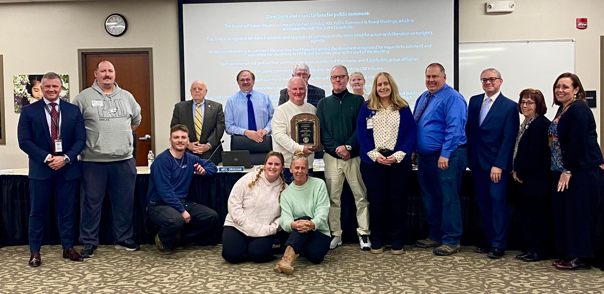 The Centennial School District presented the plaque on Tuesday night to the family of the late School Director Jane Lynch.