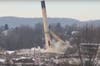 The implosion on Thursday rocked the base of the mill and the structure slowly tilted off balance before it came crashing to the earth, sending plumes of smoke into the air.