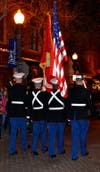 The event officially kicked off at 6:30 as runners donning Elf hats took to the streets for the Jingle Elf Run. Cash prizes were given for top finishers among men and women for the two-mile run, as children streamed down Market Street for the ½-mile event. Top three male finishers were Greg Wetzel, age 27 with a 10:02 minute time; Andy Applesauce, age 22, finishing in 10:29; and Greg Watson, age 45, who finished in 10:35. Top three female finishers were Katie O’Regan, 26, with a 11:28 time; Kimberly Hickey, 26, 12:13; and Heather Blackburn, 36, who finished in 14:00. Many of the runners donned festive costumes, including a mother and daughters who came decked in red and green tutus.