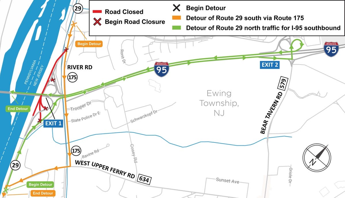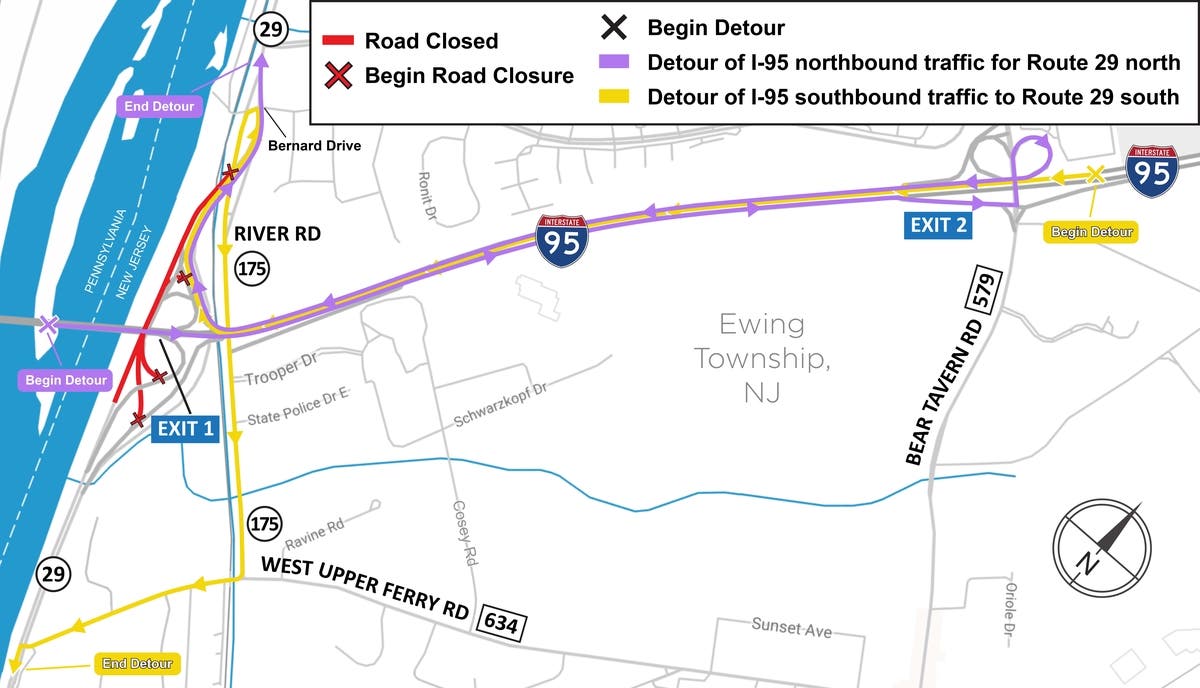 Some travel lanes and ramps in the I-95/Route 29 interchange are scheduled to be shut down and detoured during overnight periods beginning Thursday, Feb. 8, the Delaware River Joint Toll Bridge Commission announced Wednesday.