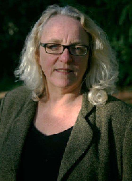 Barrington Town Council's president, June Speakman, discusses Super Pacs at the 'Take Six' election series in the library auditorium.