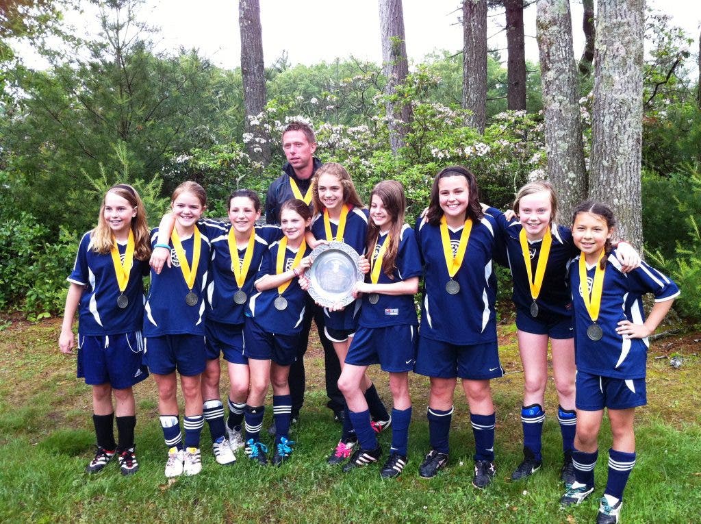 The 12-and-Under girls' soccer team from the Barrington Youth Soccer Association claimed a state title Saturday by defeating Johnston, 3-1.