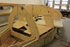 With Sheaās experience and craftsmanship in building boats, and design and technological capabilities of Herreshoff Designs, the small model is becoming life size. Currently, the hull is complete and the boat sits upright in the middle of Sheaās shop. Shea, on his own, will continue to chip away at it until the expected completion this summer.