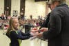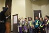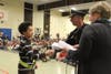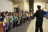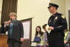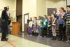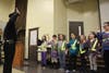 Lt. Roland Brule led nearly 30 fourth and fith graders through the oath during an assembly in front of students and parents. The students, selected by the school's administrators, are responsible for ensuring the safety of their peers when starting and ending the school day.