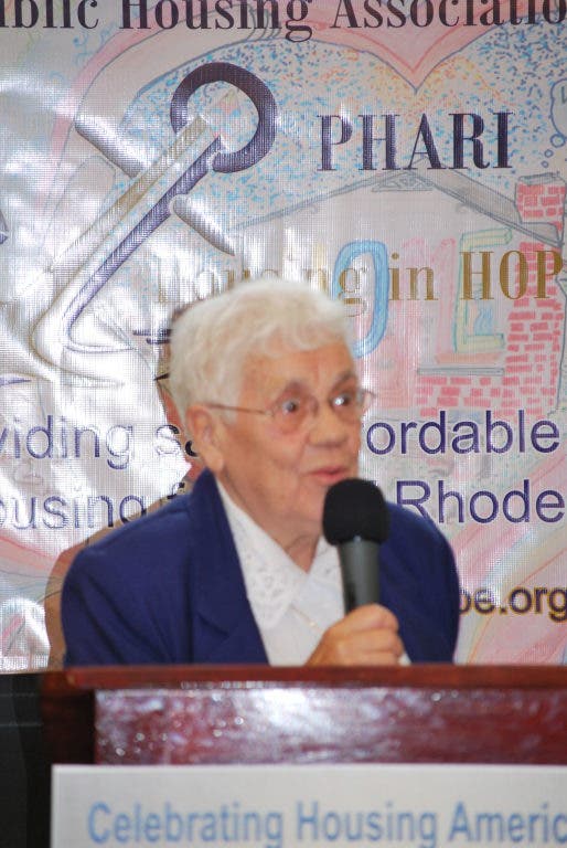 Sister Joeline Texiera, of Sisters of Mercy at the Bristol Housing Authority, shared her devotion to public housing at a “Housing America” event at the Johnston Senior Center Friday.