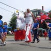 The parade's final, fifth division completed the 226th Bristol Fourth of July Parade, known officially as the Civic, Military and Firemen's Parade. The final division featured an array of patriotic visitors from a flag-covered float carrying Santa Claus to an Uncle Sam on stilts.