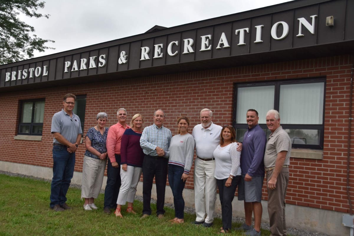 The members of the Bristol Aquatics Center Exploration Committee are (pictured from left to right): Chip Sweeney, (vice-chairman), Nancy Dobie, Jonathan Dell, Jane Deleo (treasurer), Pat McCarthy (chairman), Elizabeth Beisel, Jim Dollins, Sarah Klein (Recreation Director), Tim Shaw ( asst. recreation director) and Don Squires (recording secretary). Missing were State Representative Susan Donovan and Bristol Town Council vice-chairman Tim Sweeney and Nina Murphy.