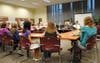 Nine students were at the meeting to answer questions about what they liked about their school and what they would change given the opportunity. Several students enjoyed the "Showcase," a talent show production, and many said they like how their teachers care how they do in school and keep them motivated.