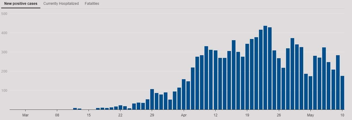Tuesday marks the second day in a row Rhode Island has reported fewer than 200 new cases in a single day, which, aside from the weekend of May 2 and 3, hasn't happened since the first week of April.
