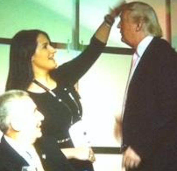 Cranston’s Alexandra Saletin, of Saletin Real Estate, managed to get her hands on the iconic blonde mane atop Donald Trump’s head on Monday. And yes, she had permission.