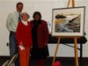 Photo: David C. Hanos, Jr., Newport School Committee Vice Chairperson, local award winning artist Natalie Phanstiehl, and Jo Eva Gaines, Newport School Committee Chairperson accept “The Beach in Winter” and original award winning watercolor in memory of Natalie’s art teacher at Rogers High School, Mary Harvey who encouraged many students to pursue scholarships from the Rhode Island School of Design.