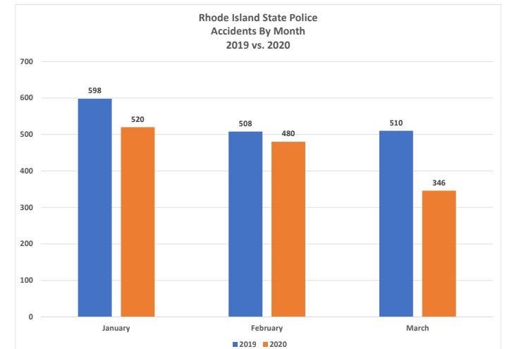 PROVIDENCE, RI โ With so many Rhode Islanders working from home and avoiding unnecessary trips, the state's highways have been considerably less crowded over the past week, especially during rush hours. This decrease in drivers has also led to a drop in crashes reported on the state's highways, Rhode Island State Police said.