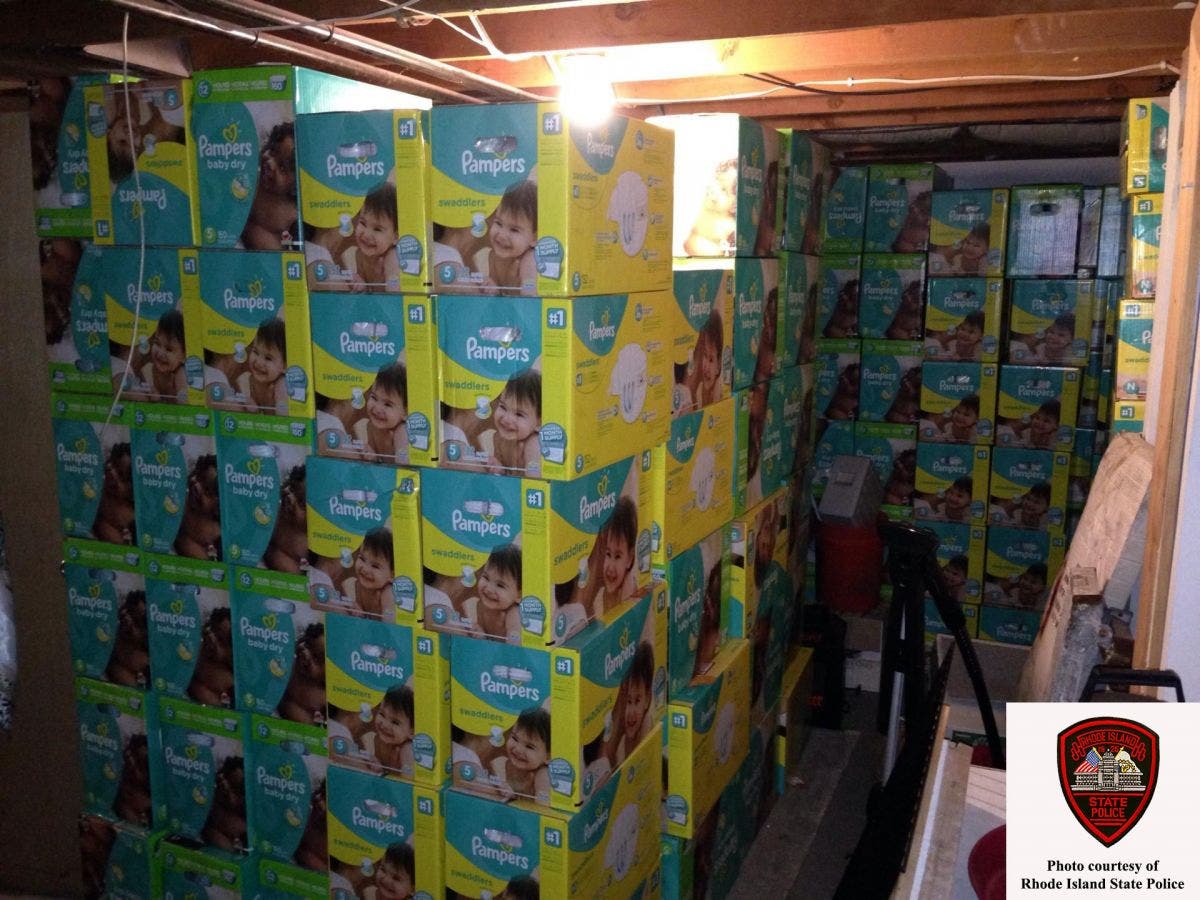 Yesterday, 900 boxes of diapers – worth an estimated $36,000 – were seized from a storefront on Smith Street in Providence yesterday, and the driver and another suspect were charged.