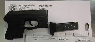 The gun, a .380 caliber Ruger, was found in the luggage of a man heading to Baltimore.