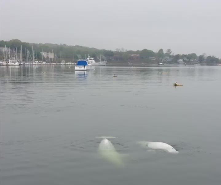 The Belugas are in Greenwich Cove