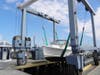 The travel lift at Norton's marina is working nonstop in advance of the hurricane