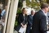 Susan Swanson, owner of The Green Door on Main Street in East Greenwich, left, and Stephen Lombardi, Executive Director, East Greenwich Chamber of Commerce, are among those listening to Neil Steinberg speak at the East Greenwich launch of Buy Local RI.