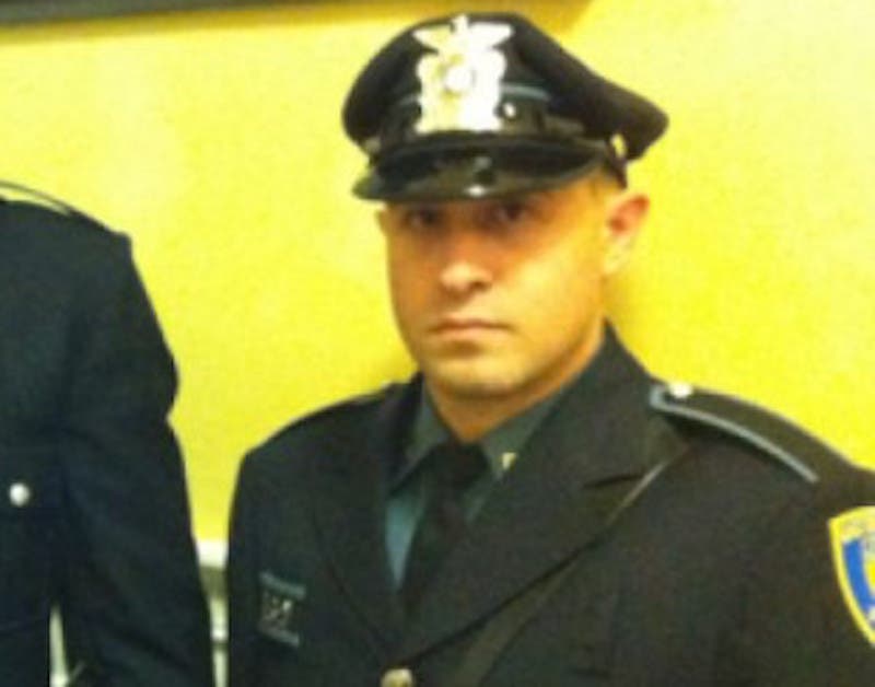 Patrolman Matthew C. White is credited with savings a man's life — and nearly sacrificing his own — in a dramatic rescue earlier this month