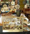 Other Items Of Interest: Victor Talking Machine with oak spear tip horn, 7 inch antique sperm whale’s tooth, swordfish sword, bone cane, scrimshawed walrus tusk, folk art bamboo w/whale motif, 1860’s Boston made compass, carved wooded totem pole, Native American California basket, 2 Native American stitched purses, 1829 leather fire bucket, fireman’s hat, automotive advertising metal sign, 19th.c iron & brass scale, early wood & brass ice skates, grain painted schoolhouse clock, large lot vintage pewter, vintage buttons, selection of blue decorated stoneware crocks, antique paisley shawl, fishing lures, carved wood eagle wall hanging, taxidermy pheasant, hunter’s brass horn, 1873 rifle as found, Daisy Red Ryder gun w/box, Dragnet target game, pair Skookum dolls, U.S. Royal Tires battery operated ferris wheel, costume and fine jewelry lots, Edison phonograph w/tin horn, wooden wall telephone, ornate wood bird cages, king of the road brass car horn, stereoviewer and cards, hand painted Nippon chocolate set, 30 Raynaude & Co. Limoges dishes, 12 Tiffany plates, set of 12 Doulton Burslem gilt chargers, Cornish & Sadler kitchenware, Herend bunnies,