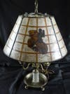 – Gorham Foundry , 1924 signed Handel etched Heraldic Glass shade table