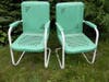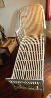 Crafts mirror, antique wicker lounger, Mid-Century seafoam green metal patio