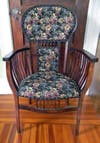 Table, Stick Back Chair, Edison Cabinet Model Victrola, oak drop front desk, Farm table, mahogany