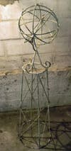 Arts & Crafts flag holder, iron swan planter, metal sphere garden ornament,