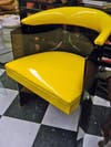rocker, set 4 of 4 Mid-Century Modern yellow & smoked Lucite chairs, square oak end tables,