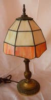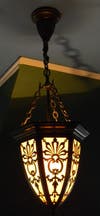 & Crafts Period hanging lamps, stained glass panel lamp, oak country