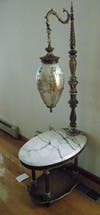 & marble plant stand, antique drafting table, stick & ball stand, 2