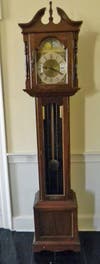 table, grandmother clock, highly decorated Oriental chest, Rosewood Oriental