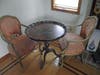 chairs, tile topped iron plant stand, pr. Gilt wood armchairs, fancy piecrust