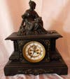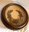 framed Victorian hair wreath, black marble mantel clock, inlaid mother of pearl