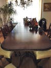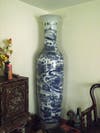 table, set of 10 mahogany dining chairs, pair of 8 ft. Oriental vases, Oriental inlaid