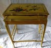 stack tole painted tables, oak ice box, mink covered footstool, stick &