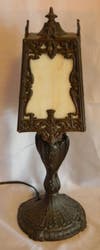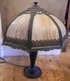 Period hammered copper & iron chandelier, 1905 Conley glass plate camera , great selection of slag glass lamps,