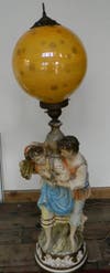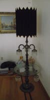 hand painted tea stand, 31 in. Victorian banquet lamp, French shabby chic tea