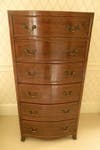 sofa, 2 over 3 cherry chest, 6 drawer mahogany chest, pair period inlaid
