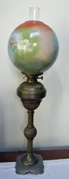 opera glasses, large selection antiquarian New England books, large bracketed oil lamp, matching pair Arts