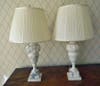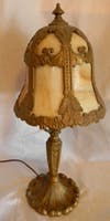 display cabinet, pair tall alabaster lamps, large Rainaud slag glass lamp, mantel size gilt wood Federal period mirror, sterling
