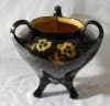 Glass: 3 pc. Weller 3 footed urn w/pansy motif, Watt Pottery, Roseville