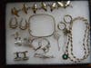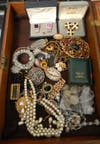 Jewelry/Perfumes: 14K diamond ring, 14K sea pearl & ruby deco pendant, cameos, large selection of vintage costume jewelry, semi-precious loose stones, sterling & 14K lots, Goose That Laid The Golden Egg perfume in original box by Moser, German gold overlay perfume, Roby-Paris perfume, other perfume selections,