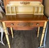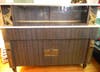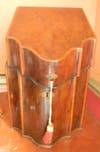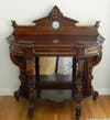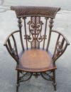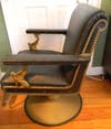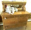Furniture: Shaker chair, c.1954 Leopold Stickley cherry drop leaf table, Victorian petticoat table, ball & claw foot piano stool, Maddock block front secretary, c.1940 custom made Rosewood server , Rosewood dining table & china closet, pair of oak file cabinets, tall iron & wood book stand, Victorian wicker armchair, marble top tables, French walnut marble top occasional table, Queen Anne slipper foot tall back chair, torchiere floor lamps, curved glass curios, 2 wrought iron patio sets, ice cream set, Victorian iron umbrella stand, wrought iron chaise lounge, Adirondack bench, mid- century lamp tables, large Rococo style mirror, swan arm rocking chair, cottage bureaus, walnut cane chaise lounge, shabby chic farm table, mahogany bedroom set, walnut bedroom set, elephant motif settee, stacking tables, Oriental plant stands, Industrial wood and iron long table, 15 drawer file, drafting table, country store counter, large grey painted cupboard, c.1960 pair Formatron Winged Sphinx barber chairs & matching barber shop desk ,