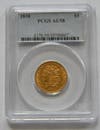 Coins: 1913 $10.00 gold piece, 1928 $2.50 gold piece, 1838 $5.00 PCGS AU58 gold piece, 1787 Horned Bust Conn., 1787 Ct. cent, 1788 Ct. cent, 1787 Ct. and New Jersey cents, 1872 Indian cent, 1878-S silver dollars, 1883-CC dollar in case, 1893 silver dollar, 1895-O silver dollar, 1899-O silver dollar, 1796 gallery mint quarter, 1925 & 1926 silver dollars, 1986 1/10th oz. gold Angel Isle of Man, 1954 proof Franklin, foreign coin lots,