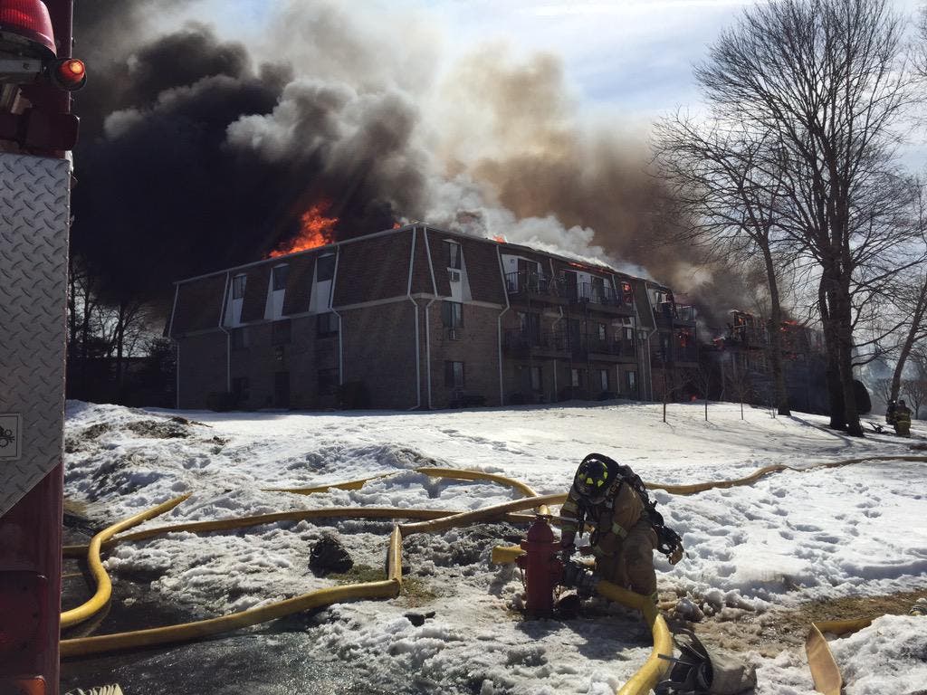 The fire has caused a portion of a wall in Building C to collapse. The fire was contained to one of three buildings at the site, located at 754 Quaker Lane.
