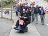Leading the polio awareness march in his power scooter was polio victim John Nanni of Hamilton Township in New Jersey who also spoke to the club at their noon meeting.