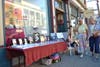 Under blue skies and mild temperatures, people came to see the artwork, try samples of food from local restaurants, and listen to music as they strolled the street and checked out local stores.