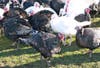 He offers two types of turkey: standard white, which is more like the turkeys we're used to, with large breasts and lots of white meat; and broad-breasted bronze, a heritage breed, a bit smaller, with more dark meat.