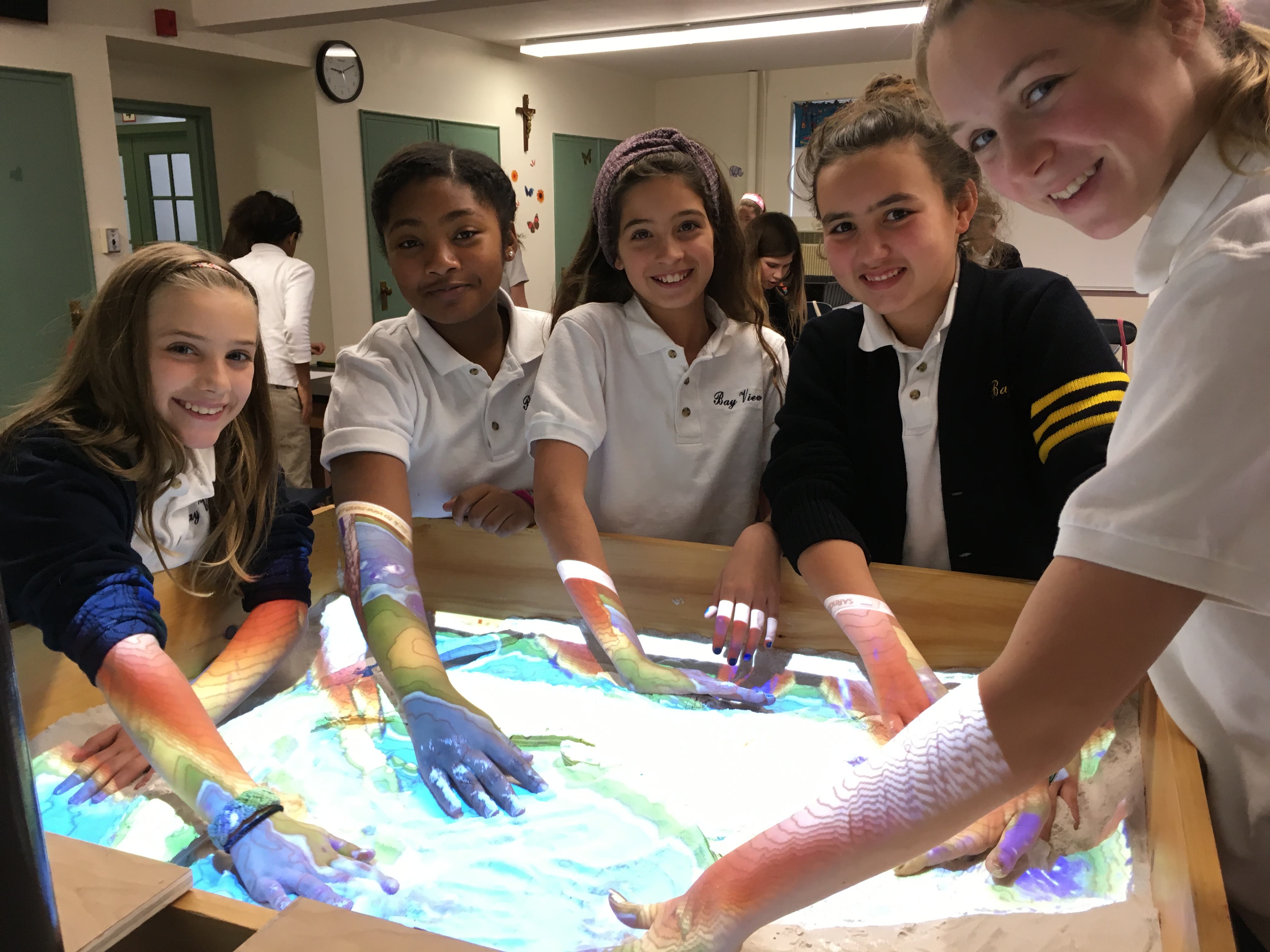 EAST PROVIDENCE, RI—Picture a wooden sandbox on a cart. Add a computer under the cart. Put something that looks like a projector above. That’s an Augmented Reality Sandbox, AR Sandbox, for short, and Bay View Academy Lower and Middle School students were able to use one in their own classroom, thanks to Zephyr Education Foundation, based in Woods Hole, Mass.