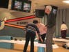 Your humble correspondent receives a lesson in bowling and himself from a group of elderly women.